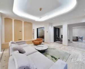 Espace Real Estate brings to the market this gorgeous 4 bed villa in Meadows 2. Set on a 5,813 sq.ft. single-row plot, this fully renovated Type 6 includes generous living, dining, and family areas, an en-suite guest bedroom, and a private office. Upstairs offers three bedrooms and a family lounge, all finished with natural parquet and marble floors, Italian dressing rooms, and premium fixtures. Outside, a private pool and landscaped garden create the perfect space to relax or entertain. The villa is vacant, meticulously maintained, and ready to move in.