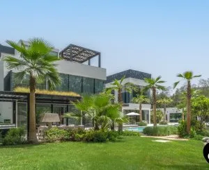 The villa offers open-plan living and dining spaces complemented by a private study, elevator access, and bespoke finishes throughout. A dedicated home cinema creates an immersive entertainment experience, while the fully equipped gym & wellness pavilion provide a private sanctuary for relaxation and rejuvenation.