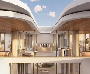 The interiors, conceptualized by Hirsch Bedner Associates (HBA), showcase a diverse range of aesthetics for each residence, featuring meticulously sourced materials from around the globe.