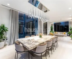 haus & haus proudly presents this exceptional 4-bedroom home in Al Barari, fully furnished and backing the Royal Nature Reserve. With a BUA of 9,033 sq.ft on an 11,318 sq.ft plot, the property blends privacy, elegance, and natural beauty. Floor-to-ceiling glass floods the interiors with light, enhanced by Kahrs wooden floors, designer lighting, and a private study. The open-plan layout includes a sleek show kitchen and spacious living areas that connect seamlessly to the outdoors. A shaded pergola, lush garden, and infinity-edge pool create the perfect setting for entertaining. Maid’s and driver’s rooms add practical convenience. Enjoy life in Dubai’s greenest community with access to world-class wellness, dining, and leisure amenities.